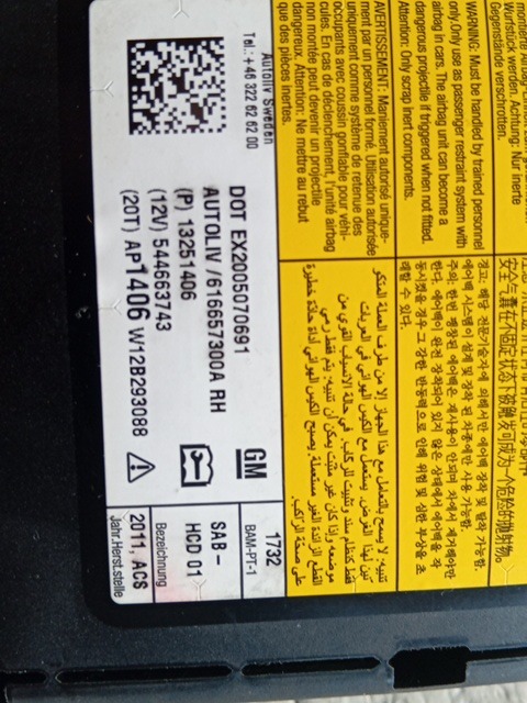 | Descrizione | AIRBAG SEDILE PASSEGGERO CHEVROLET ORLANDO 2012 13251406 |