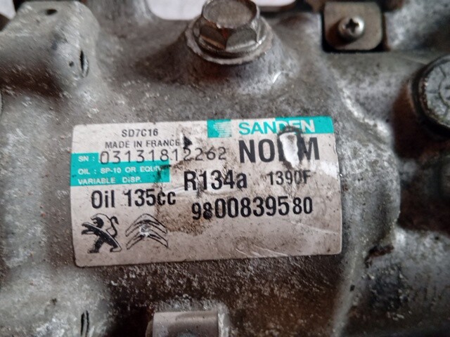 | Descrizione breve | COMPRESSORE A/C PEUGEOT 3008 2013 1.6 HDI 9800839580 |