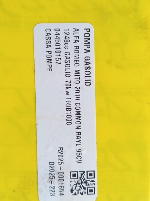| Descrizione breve | POMPA GASOLIO COMMON RAYL ALFA ROMEO MITO 2010 1.3 MULTIJET 90CV BOSCH 0445010157 |