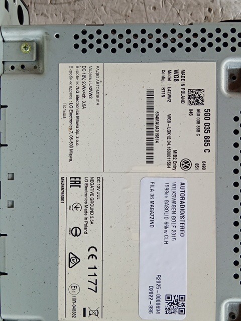 | Descrizione breve | STEREO VOLKSWAGEN GOLF VII 2015 1.6 TDI |