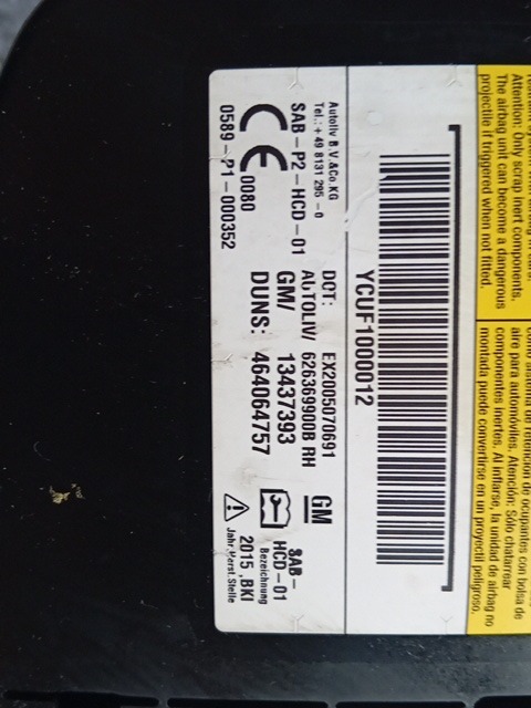 | Descrizione | AIRBAG SEDILE PASSEGGERO OPEL MERIVA 2015 13437393 |