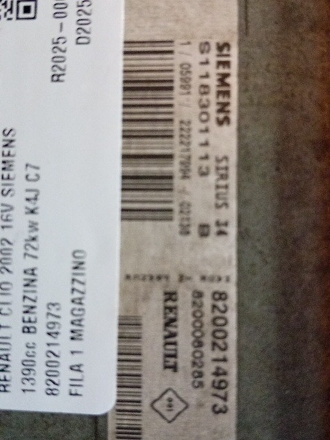 | Descrizione breve | CENTRALINA MOTORE RENAULT CLIO 2002 1.4 BENZ. 16V SIEMENS 8200214973 |