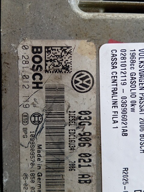 | Descrizione breve | CENTRALINA MOTORE VOLKSWAGEN PASSAT 2006 2.0 T.D. 140CV BOSCH 0281012119 - 03G906021AB |