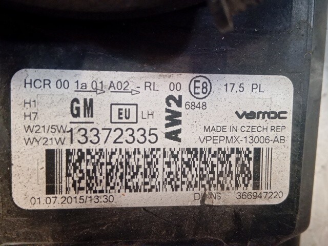 | Descrizione breve | FARO SX OPACO OPEL MERIVA 2016 13372335 |