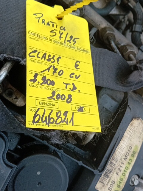 | Descrizione breve | MOTORE MERCEDES CLASSE E 2008 2.2 CDI 170CV (646821) - (60127169) |